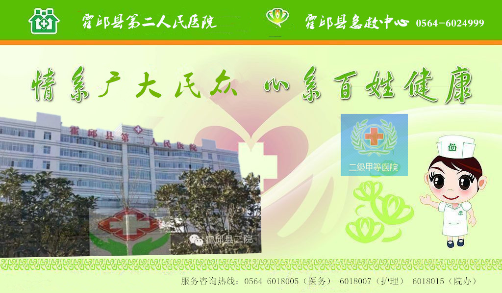 霍邱二院急救电话:0564-6024999 服务电话:6018005(医务)6018007(护理)6018015(院办)