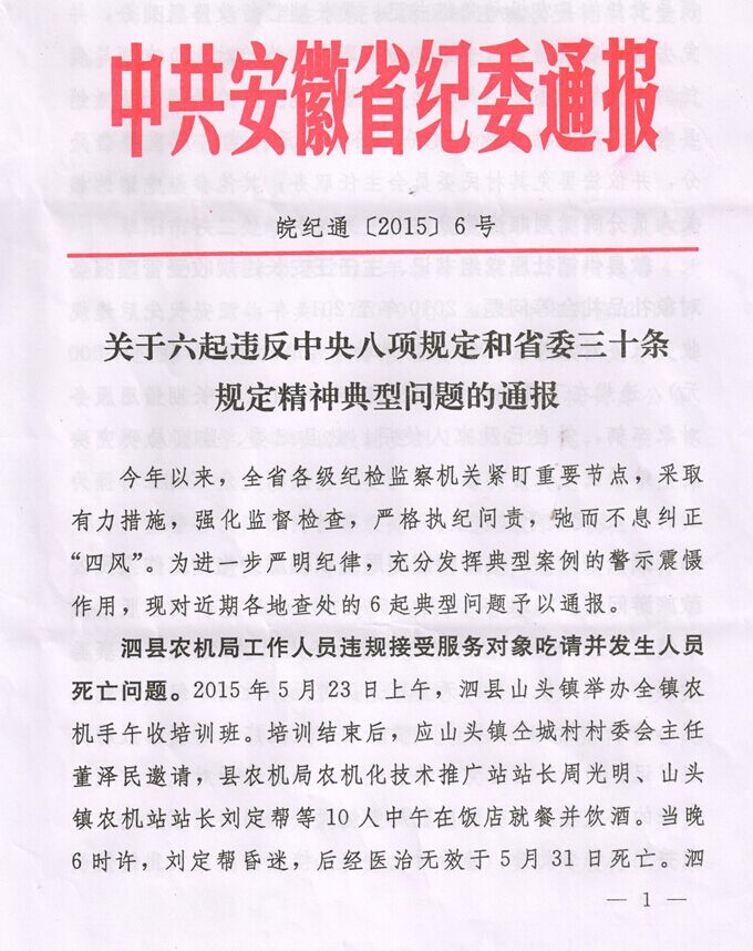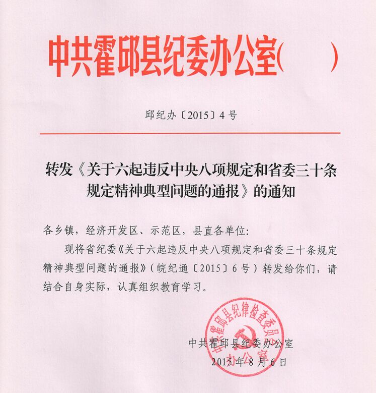 转发:《关于六起违反中央八项规定和省委三十条规定精神典型问题的通报》的通知