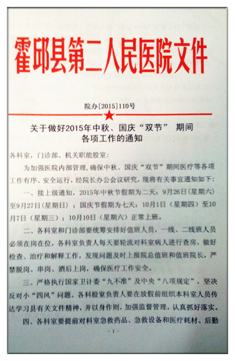 关于做好2015年中秋、国庆“双节”期间各项工作的通知