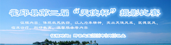 由霍邱县第二人民医院、霍邱县宣传信息中心、霍邱县摄影家协会联合举办的霍邱县第二届“天使杯”摄影比赛,将于3月28日上午9时30分,在霍邱县第二人民医院举行启动仪式,现场颁发霍邱县第二届“天使杯”摄影比赛拍摄证(详见“霍邱新闻网”、“ 霍邱县第二人民医院网”霍邱县第二届“天使杯”摄影比赛征稿启事)。