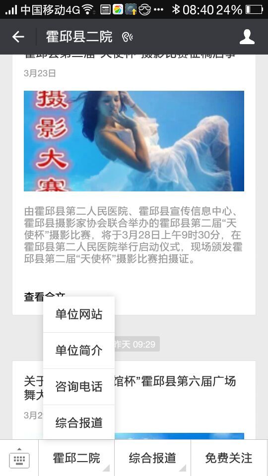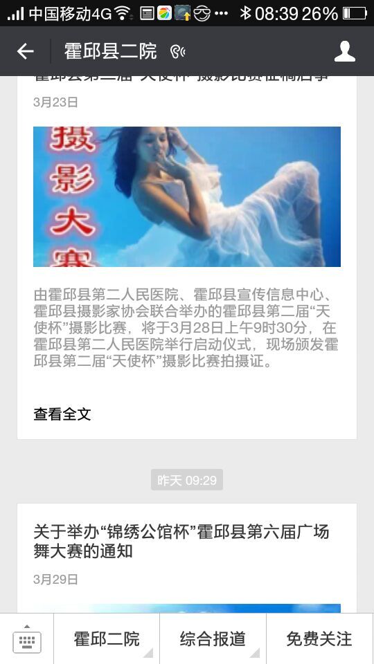 2、搜索添加“霍邱县二院”微信公众号,免费订阅。