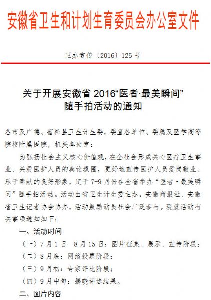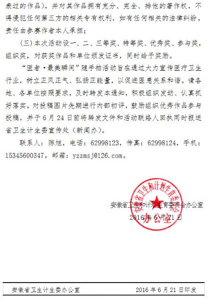 安徽省2016“医者·最美瞬间”随手拍活动联络人回执