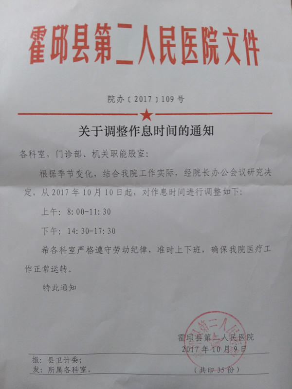 关于调整作息时间的通知