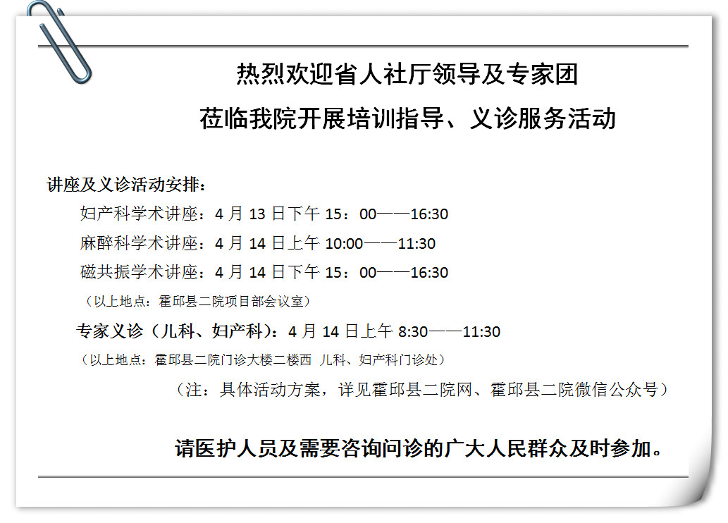 活动方式:教学查房(儿科、妇产科)、现场指导、磁共振学术讲座(《常见病的磁共振影像学诊断》15:00—16:30)