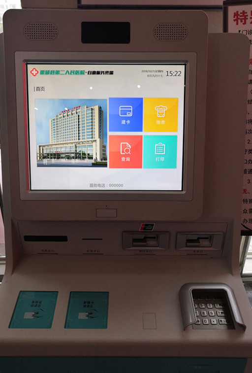 继本月10月8日起,霍邱县二院启用智慧社保一卡通工作以来,一楼大厅配备了门诊自助缴费、住院自助充值、查询等功能一体机6台,实现社保卡、银行卡自助缴费充值功能,为患者提供了又一大便利。