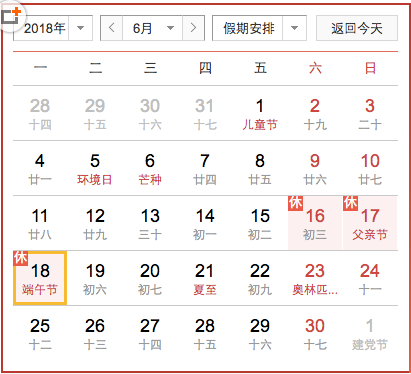 2018年端午节放假安排
