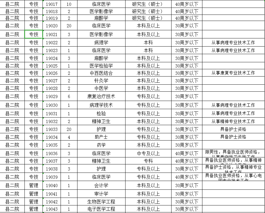 1.县级公立医院工作人员:计划招聘数203名,其中县一院83名、县二院100名、县中医院20名。具体详见《2019年度霍邱县一院、二院、中医院招聘工作人员计划(岗位)情况一览表》(以下简称《一览表》)。此次招聘人员纳入编制周转池制度管理。