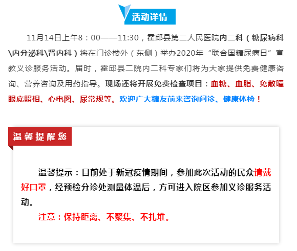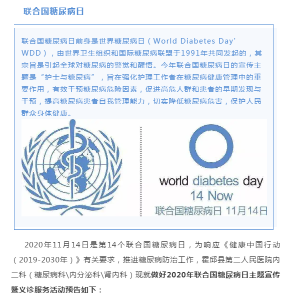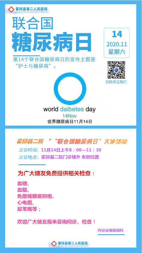 【义诊预告】 | 霍邱县二院开展第14个联合国糖尿病日活动