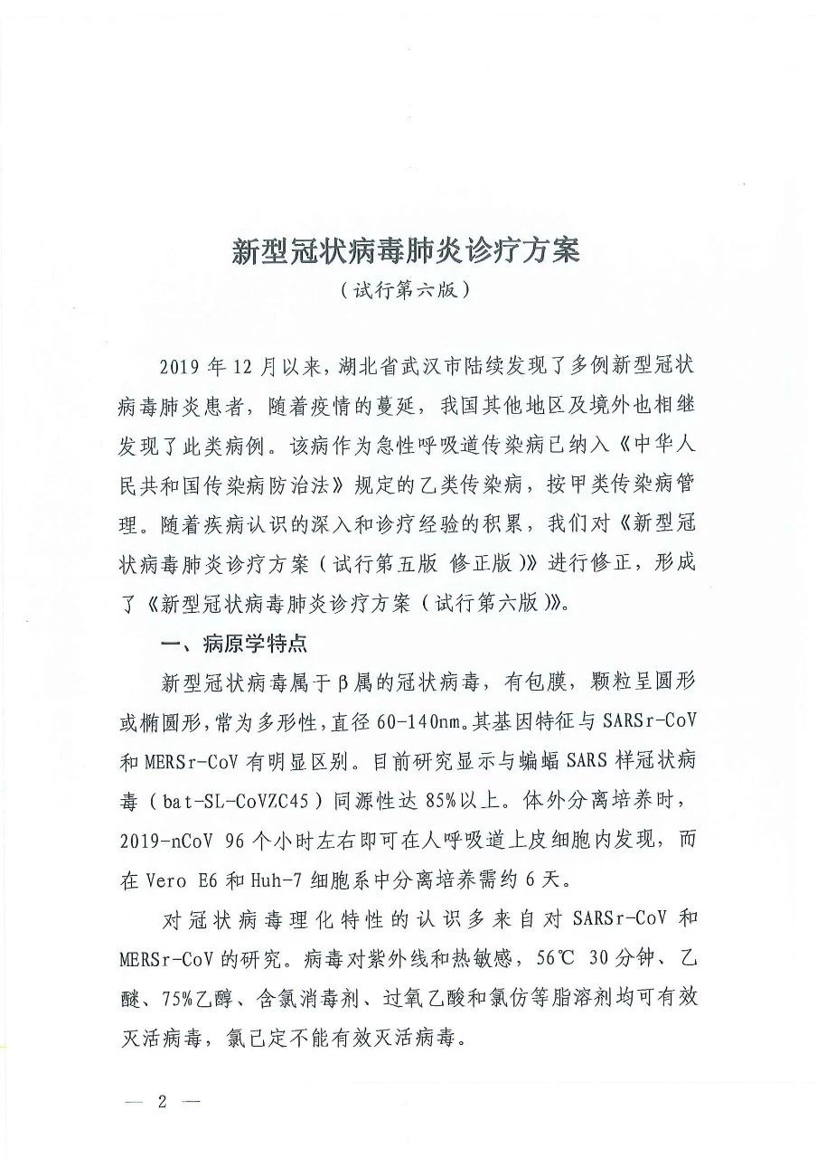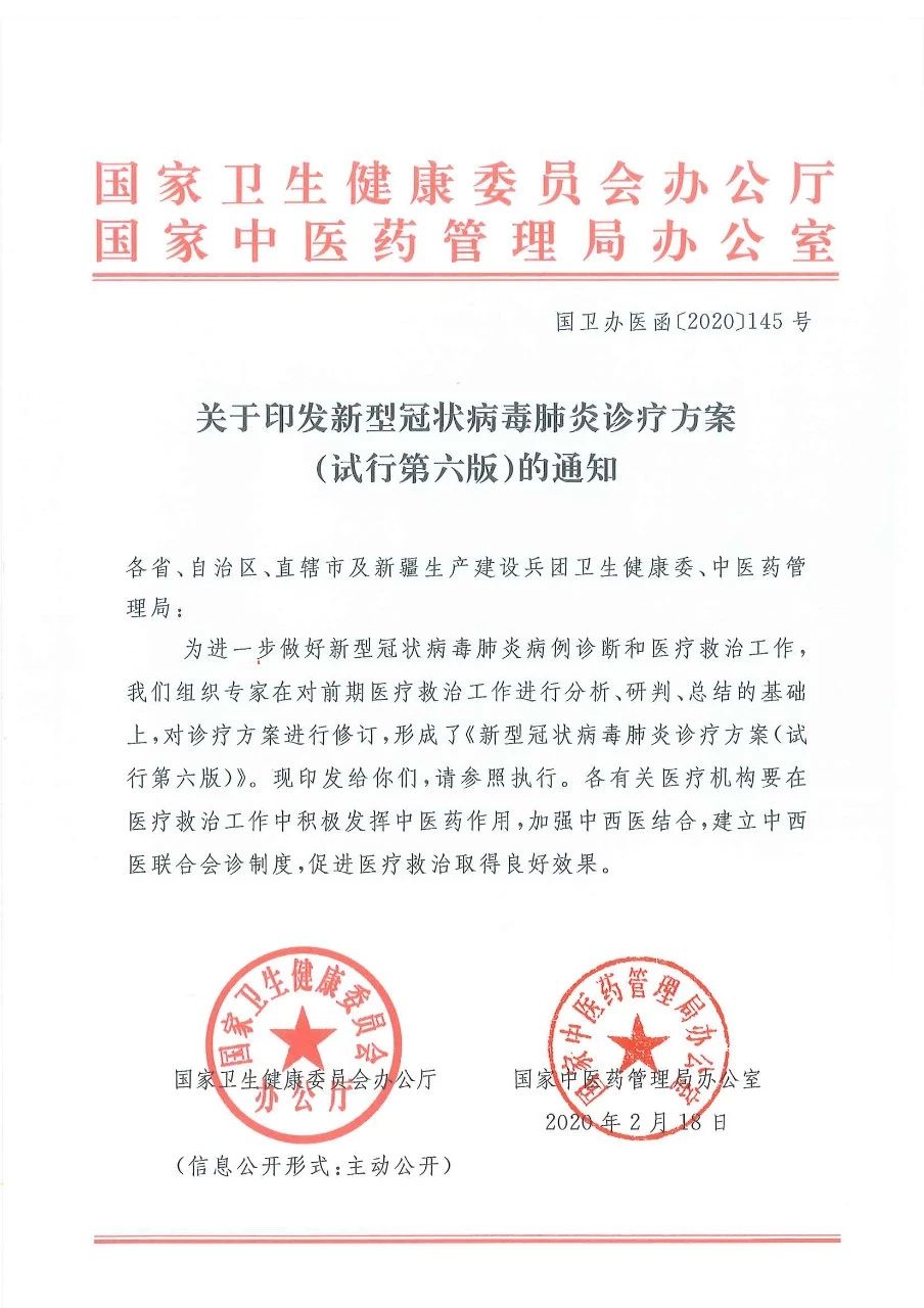 最新丨新冠肺炎诊疗方案(试行第六版)