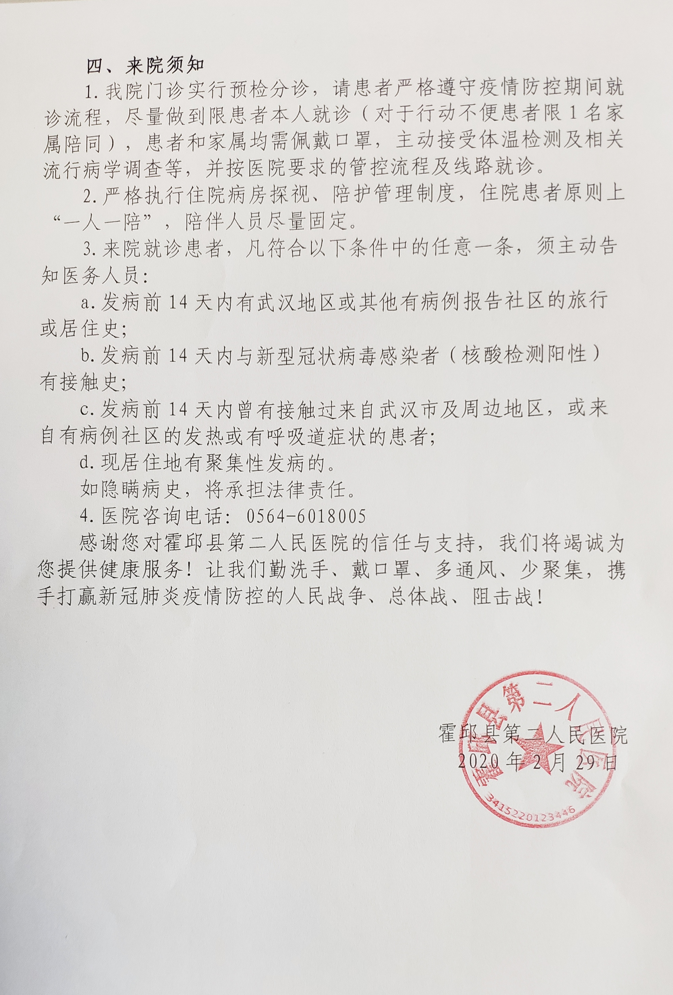 霍邱县二院关于有序恢复正常医疗服务工作的公告