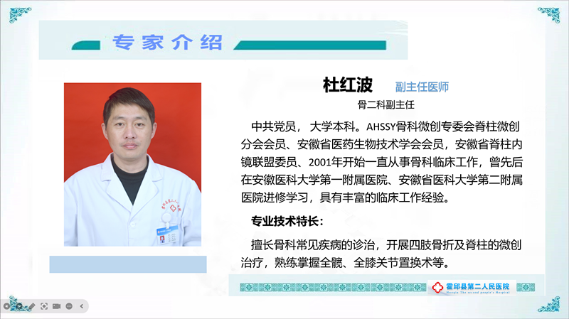 2001年开始一直从事骨科临床工作,曾先后在安徽医科大学第一附属医院、安徽省医科大学第二附属医院进修学习,具有丰富的临床工作经验。