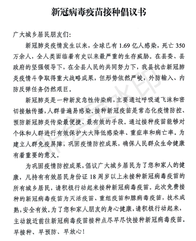 新冠疫苗接种倡议书