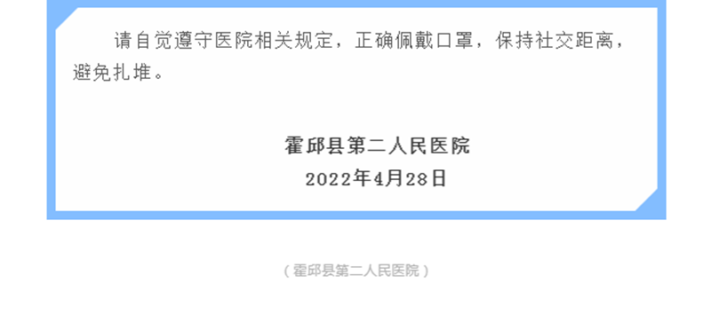 【重要提醒】最新!霍邱县第二人民医院就诊公告