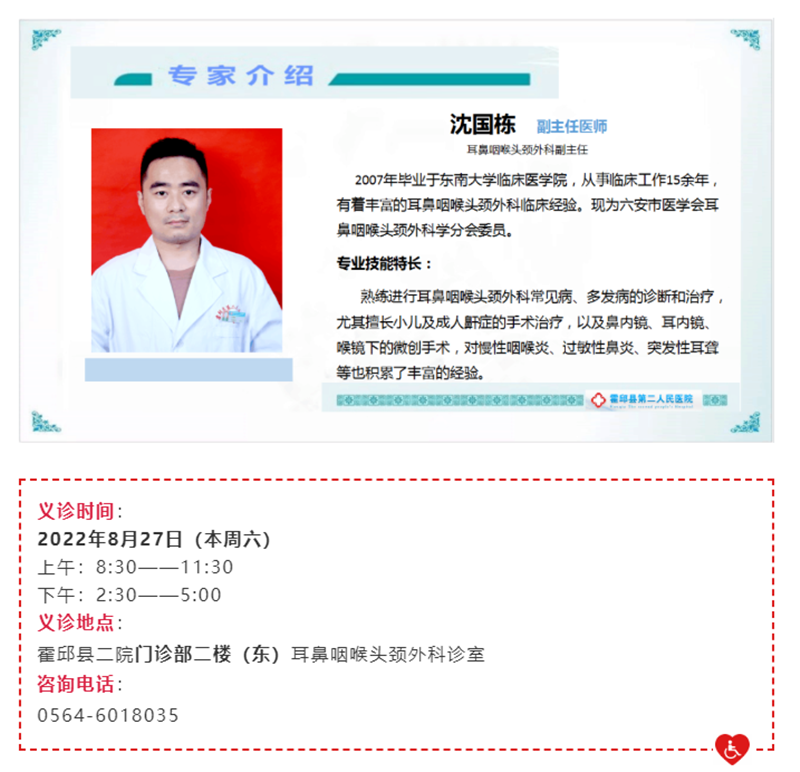 【义诊预告】本周六!中科大、安医大专家将莅临霍邱县二院!