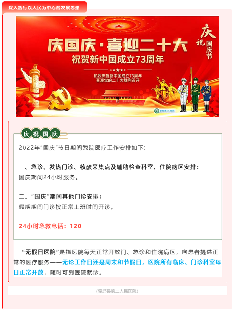 便民就医|霍邱县二院国庆节日期间继续推行“无假日医院”服务