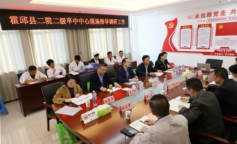 霍邱二院网 为大力推进卒中中心建设工作,规范和提高卒中诊治水平,保证医疗质量和医疗安全,11月12日,安徽省卒中协会会长、安徽省卒中中心专家组组长王国平一行5人莅临县二院开展二级卒中中心现场指导调研工作。县卫健委二级主任科员胡伟,县二院党委书记周进等院党政领导班子成员及相关科室负责人参加。