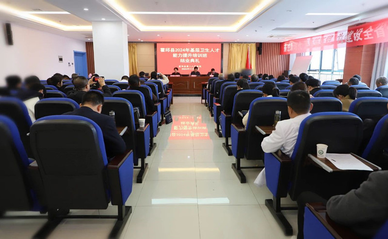 霍邱二院网 11月13日,由县卫健委主办、县二院承办的“霍邱县2024年基层卫生人才能力提升培训班”结业典礼在县二院住院部十六楼会议室顺利举行,标志着自2024年10月14日至2024年11月13日为期30天的本期培训班圆满结束!来自全县31家乡镇村卫生室的70名乡村医生顺利结业。县委卫健工委委员、县疾病预防控制局专职局长兼卫健委副主任朱文俊,县二院党委书记周进,副院长吴莉出席。结业典礼由副院长吴莉主持。