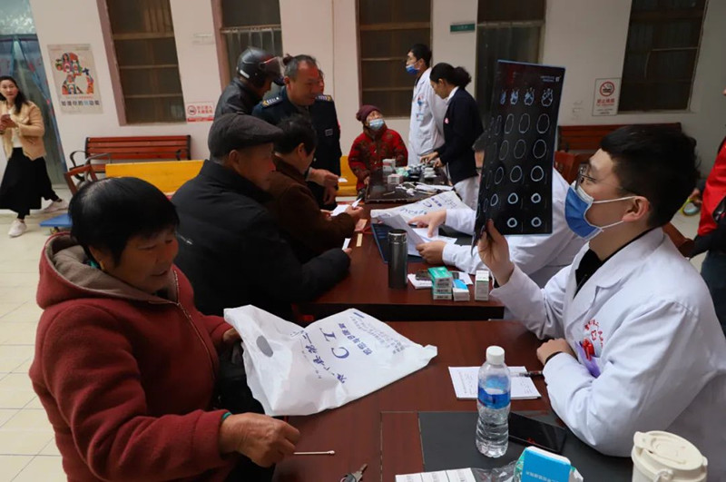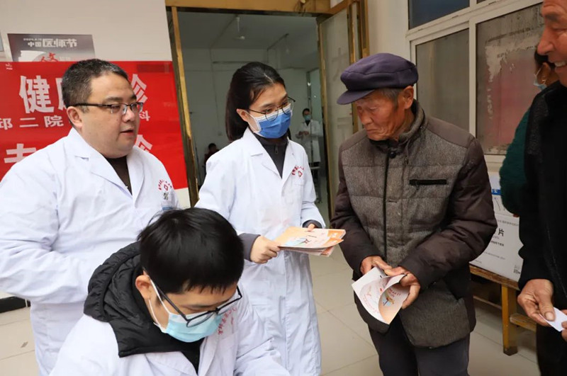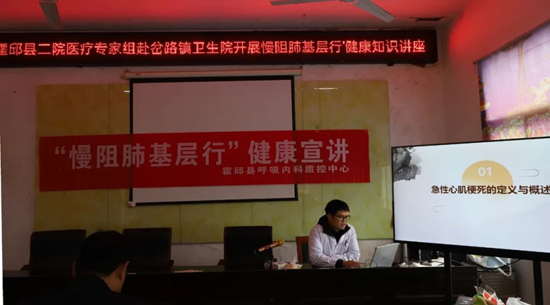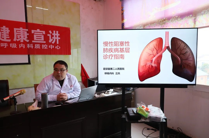 讲座现场,县二院内一科病区(呼吸内科/心血管内科)副主任汪兵,利用PPT课件,通过理论科普、实操培训和案例分享相结合的形式,就“慢阻肺”的病因、特征、症状、并发症以及如何预防、治疗、锻炼等内容进行详细讲解并现场演示相关器材,引导大家正确认识这一疾病,了解并掌握慢阻肺的常见防控技能;周国庆医生结合多年临床实践经验,随后分享心梗类疾病救治预防科普,让大家受益匪浅。义诊现场,医护专家团队为前来义诊的群众提供一对一的健康咨询指导、免费测量血压血糖及发放健康知识宣传手册等服务,同时针对慢阻肺人群常见问题进行个性化的健康指导,免费发放相关药品等。