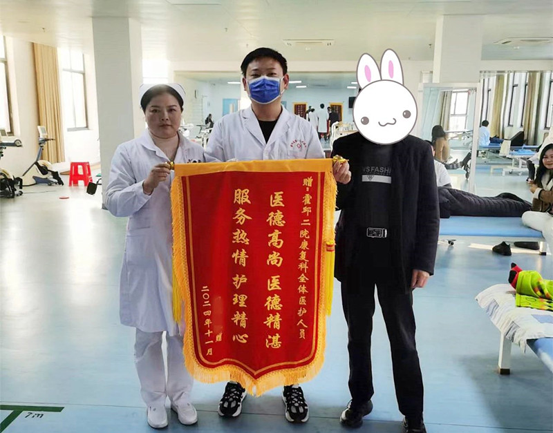 据了解,患者田某,男,56岁。因突发左侧肢体活动不利,在省级医院行头颅CT示:右侧基底节出血。经住院治疗,病情平稳后出院。鉴于左侧下肢体活动不利存在,为求进一步康复治疗,遂来县二院康复中心要求住院治疗,遂拟以“脑出血恢复期”收住院。康复治疗期间,患者感叹:“康复效果不可思议,能够恢复得这么好,超出我的预期,太满意了,没想到康复治疗效果那么好!感谢治疗师余德涛及中心医护团队的精心治疗和护理服务!”送来锦旗的同时,激动地表达着自己对医护人员的感激之情。