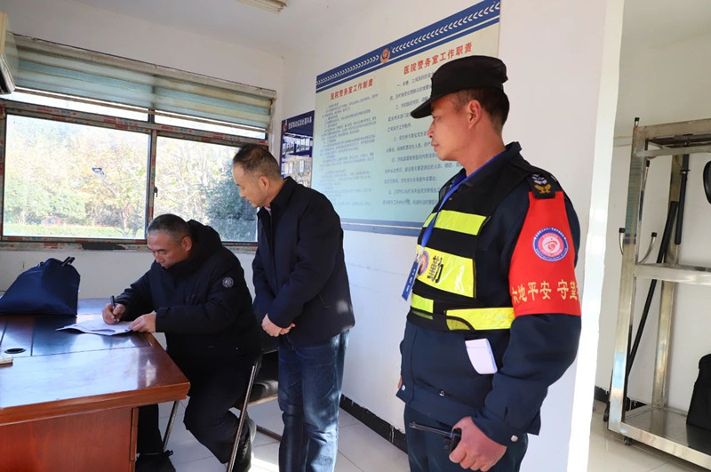 督导组一行通过实地查看、查阅台账、现场交流访谈等方式,对县二院安保体系力量配备及责任落实、安全设施设备运行、警医联动机制、医院应急处置流程等方面进行了全方位、深层次督查指导。