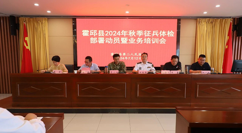 霍邱二院网 为切实做好2024年下半年(首批)征兵体检工作,确保我县征兵体检工作顺利有序进行,7月12日,县二院在住院部十六楼会议室召开2024年秋季征兵体检工作动员部署暨业务培训会。县委常委、县人武部部长李小四,县人武部副部长田桥博,县二院党委书记周进,副院长朱勇、吴莉、鲍广兵出席会议,征兵体检组全体人员参会。会议由副院长朱勇主持。