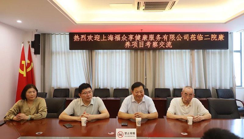 霍邱二院网 7月25日,上海福众享健康服务有限公司总经理常振,副总经理陈士元、王多兵一行莅临霍邱县二院就康养中心项目考察交流。霍邱驻上海联络处余燕,县二院党委书记周进,副院长朱勇,院长助理、康养中心主任陈孝军等相关负责同志陪同参观并参加座谈交流。