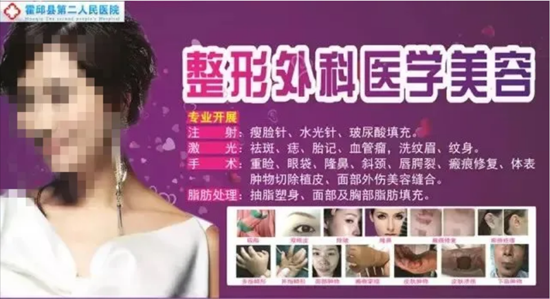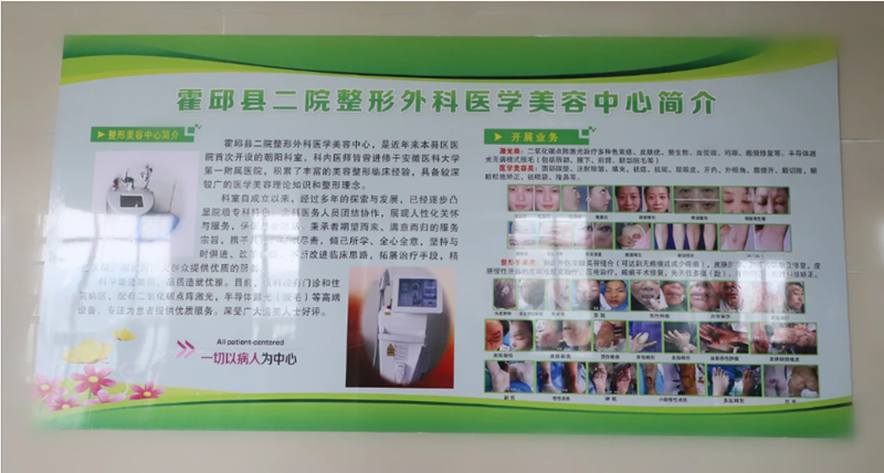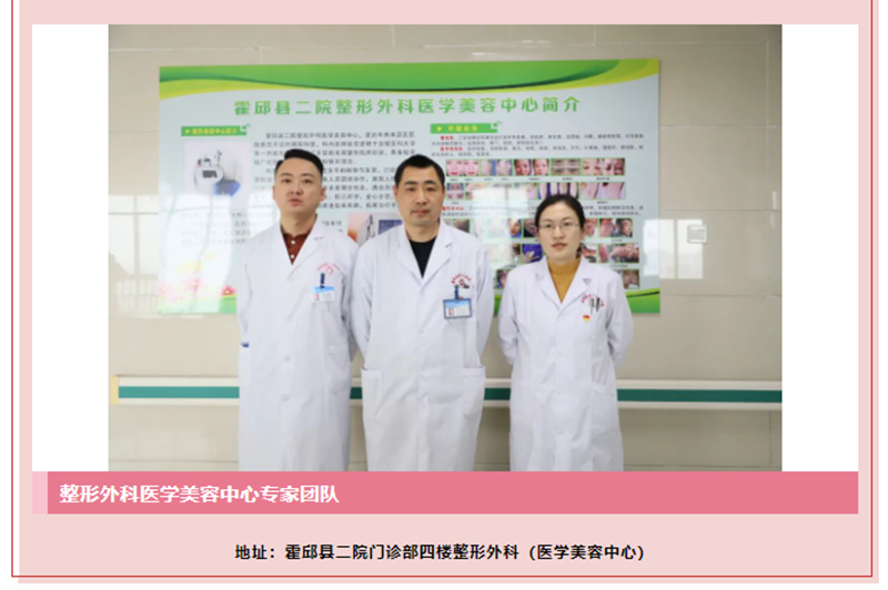 地址:霍邱县二院门诊部四楼整形外科(医学美容中心)
