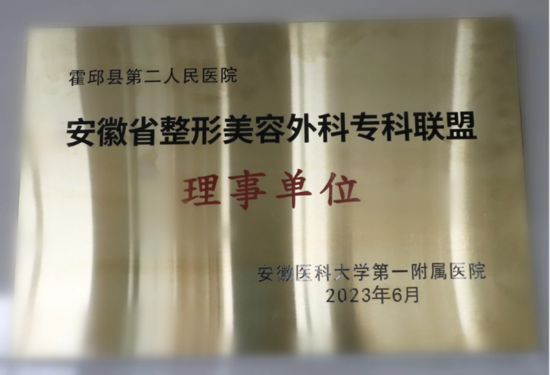 2023年6月,长三角“医美抗衰”高峰论坛暨“安徽省整形美容外科专科联盟”成立大会上,县二院成为霍邱县首个“安徽省整形外科专科联盟理事单位”。