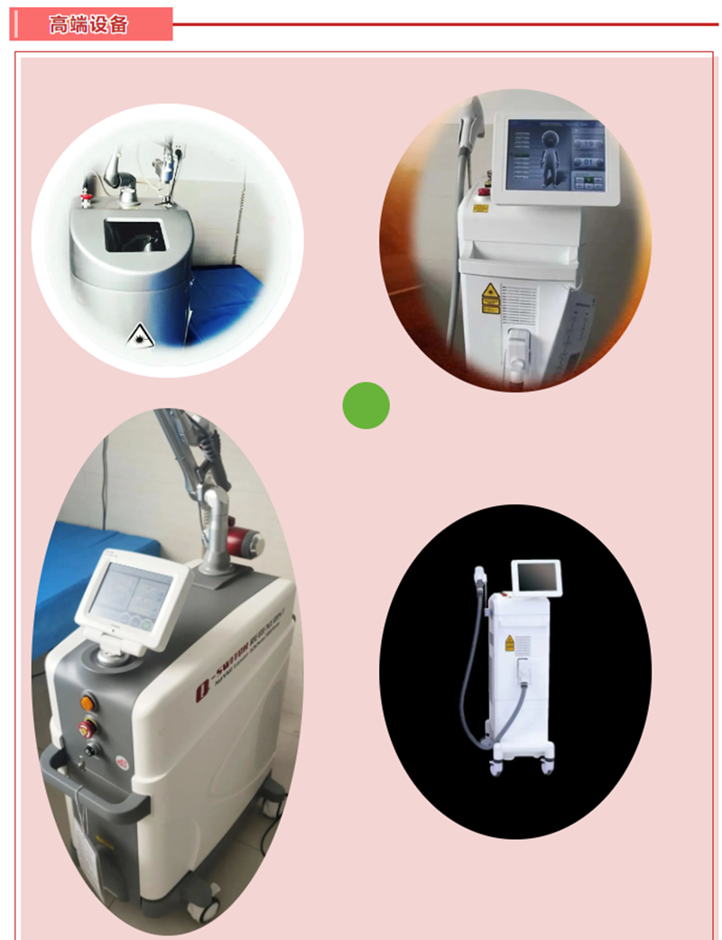 新设备YAG激光治疗机:主要治疗是治疗雀斑,黄褐斑,咖啡斑,太田痣,蓝痣,伊藤痣,浅层红血丝,洗纹身,纹眉等。治疗安全无创、恢复时间短、祛斑更快速、疗效更有保障。