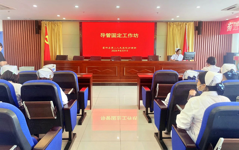霍邱二院网 为保障患者的管道安全,提升全院护理人员的导管护理安全意识,统一临床常用导管的标准化护理,提高护理人员导管护理质量,降低非计划拔管率,我院导管组在护理部的安排与指导下,于8月9日下午在住院部十六楼会议室成功举办“导管固定工作坊培训”主题活动。护理部、各科护士长、导管组联络员共计40余人参加。
