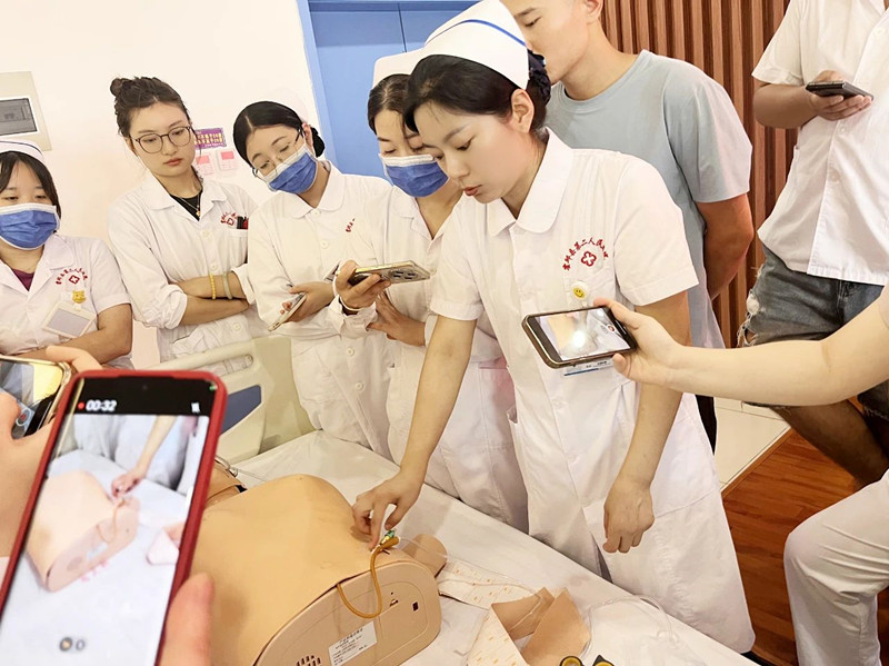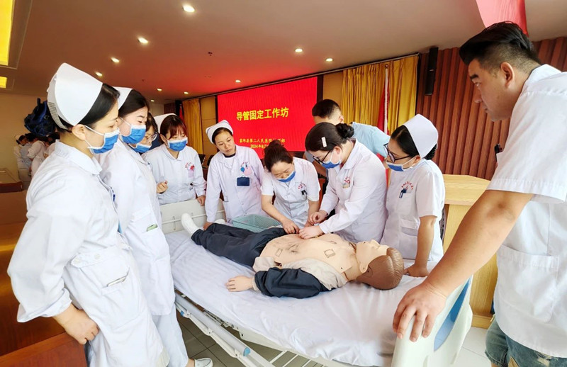活动中,导管组长首先对临床常见导管及专科导管质控过程中发现的问题,用图片的形式进行分享;现场参与人员共同找茬;导管小组分两组现场操作演示;手把手指导操作,学员自己动手练习,切身体验了固定贴的裁剪方法和技巧,确保参加的业务骨干首先全面掌握,以点带面,逐步实现全院护理人员全员掌握的目标。