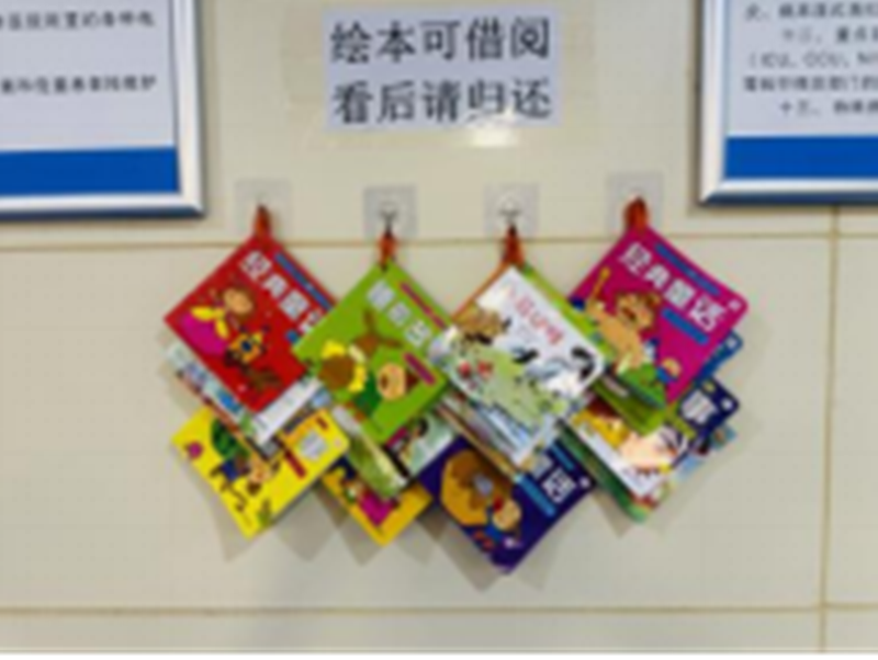 科室医护人员将家里与儿童有关的各类图书带到科室,利用业余时间精心布置,用爱心建造了“绘本借阅角”。在枯燥无味的住院期间,让孩子们可以在书中获得精神上的愉悦和满足,每当患儿路过借阅角都会驻足停留,拿起喜欢的书在知识的海洋中遨游。
