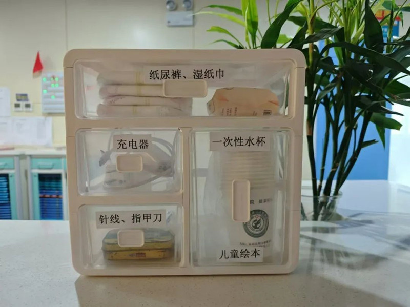 为了帮助家长解决患儿生活中遇到的“小难题”,科室设置了爱心便民服务箱,准备了充电器、针线、指甲剪、一次性纸杯等物品,以备不时之需。有家长说:“别看这些小物件不起眼,关键时候能解决大问题!医生护士想得太周到了!”