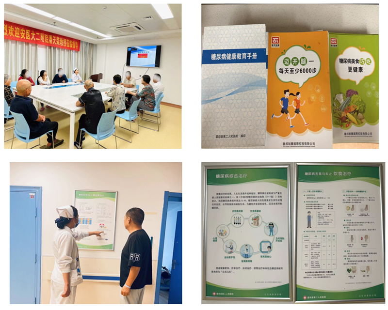 3.我科专门为糖尿病患者每周四举行一次糖尿病健康讲堂,为患者答疑解惑,帮助患者充分了解糖尿病相关知识,并且科室建立的有患者群聊,患者可以添加微信群,无论是住院的还是出院的患者都可以有问题及时在群里交流,这样可以更有效的帮助患者解决问题。我科在病区走廊及护士站区域放置了糖尿病相关知识的健康宣传牌及健康教育手册,当患者在病区散步走动时可以顺便学习糖尿病知识,方便患者“边走边学”,尽量做到让患者可以耳濡目染。