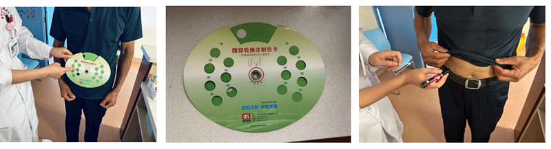 2.对于糖尿病患者的药物治疗,胰岛素是重要的组成部分,胰岛素分为多种,有短效胰岛素、中效胰岛素、长效胰岛素、预混胰岛素等。对于第一次接触和使用胰岛素治疗的患者,不懂得如何使用,为解决这种情况,我科护理人员会多次演示并指导初期治疗的患者,如何正确的使用胰岛素笔,利用特制的腹部定位卡,在患者脐周模拟、准确定位,如何正确注射胰岛素,该注意哪些等,直到糖友患者能熟练掌握为止。
