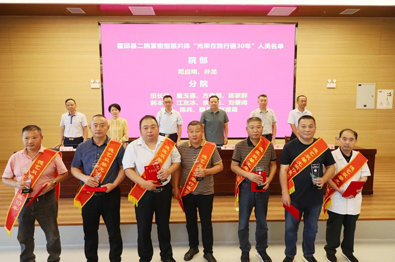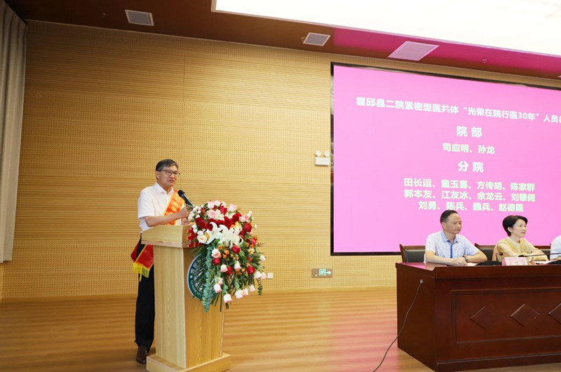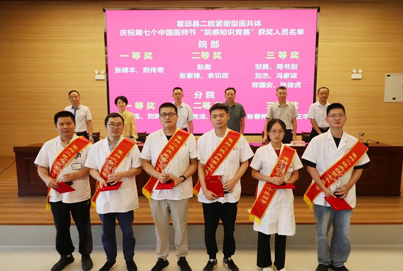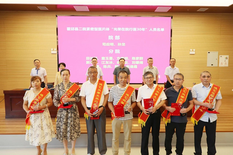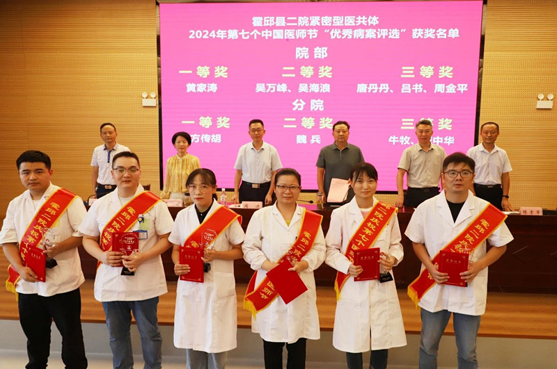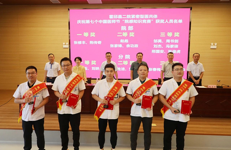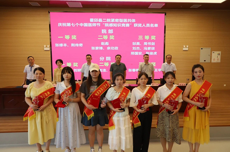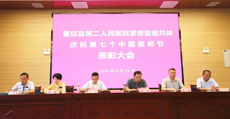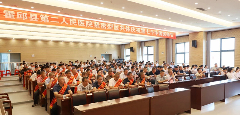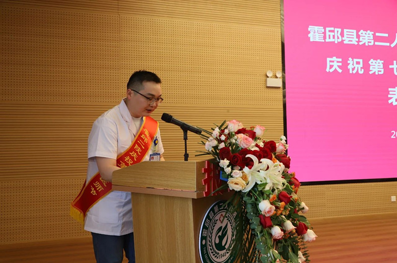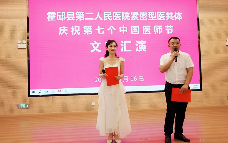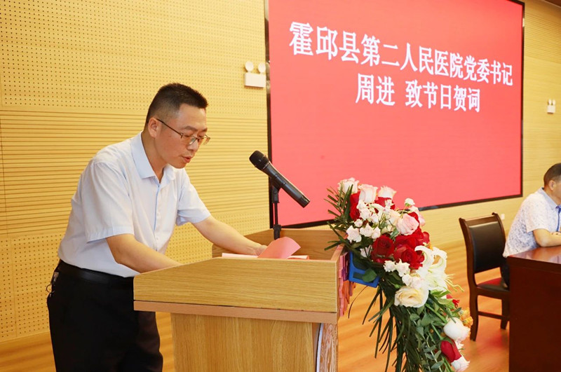 霍邱二院网 崇尚人文精神,彰显医者仁心。在第七个中国医师节来临之际,为进一步弘扬“敬佑生命、救死扶伤、甘于奉献、大爱无疆”的职业精神,充分发挥先进示范引领作用,8月16日,县二院在科教楼7楼会议室举办第七个中国医师节表彰大会暨文艺汇演,院党政领导班子、中层管理人员,所属各医共体分院负责人及受表彰医师等参加活动。大会由院党委委员、副院长朱勇主持。