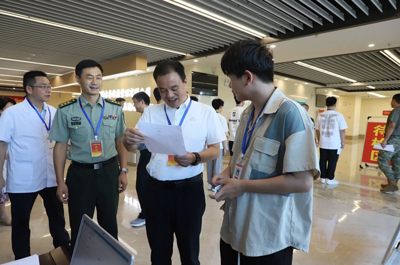 霍邱二院网 8月1日,县长韦能武一行莅临县二院体检中心暨2024年下半年征兵体检工作站,看望慰问征兵体检工作人员和应征青年。县委常委、常务副县长沈勇,县委常委、县人民武装部部长李小四,县政府办、县总工会、县卫健委及县二院等相关负责人随同。