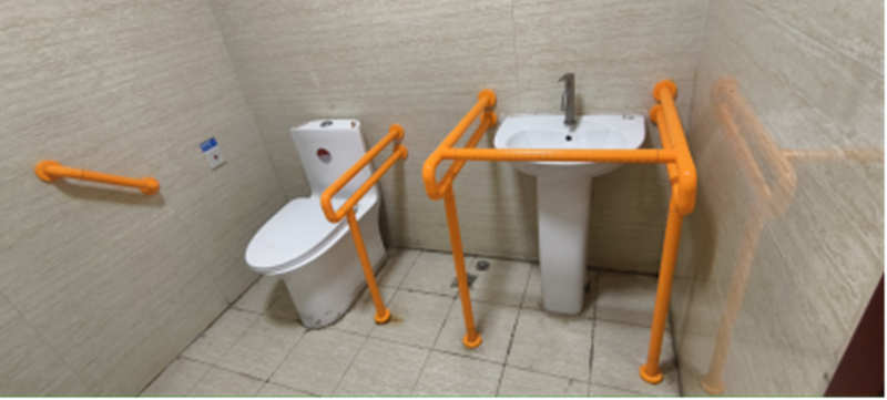 为了使病人如厕方便,我们科对卫生间进行了改造,卫生间不仅门宽大于800mm,便于轮椅出入,还配备了专用洁具、安全扶手等无障碍设施。座便器配有高度适宜的扶手,确保患者如厕时的安全与便利。此外,无障碍卫生间内部空间宽敞,便于轮椅回旋,还设有紧急呼叫系统,以便在紧急情况下患者能够及时求助。无障碍卫生间的设立为康复科的患者提供了极大的便利,使他们能够更加方便地进行个人卫生和日常活动,同时也提高了患者的安全性和舒适度。