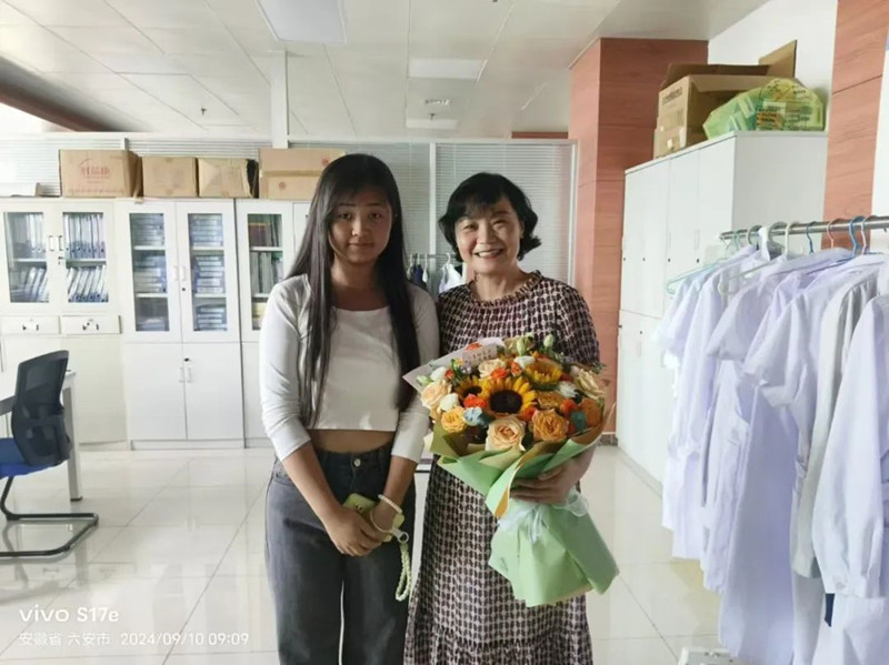 医者救人、师者育人。在这洋溢着感恩与收获的季节里,我们迎来了第40个教师节。为了感谢“白衣”教师的辛勤付出和无私奉献,9月10日教师节当天,县二院2023级“双主体班”学生代表将一束束承载着学生对带教老师谆谆教诲的感激与崇敬的鲜花送到了县二院“白衣”教师“代表”的手中,同时向他们表达着教师节深深的祝福!