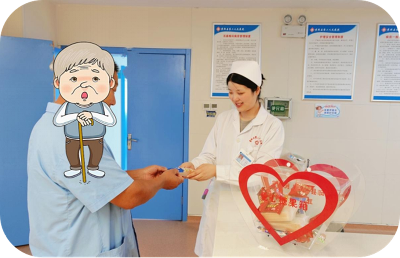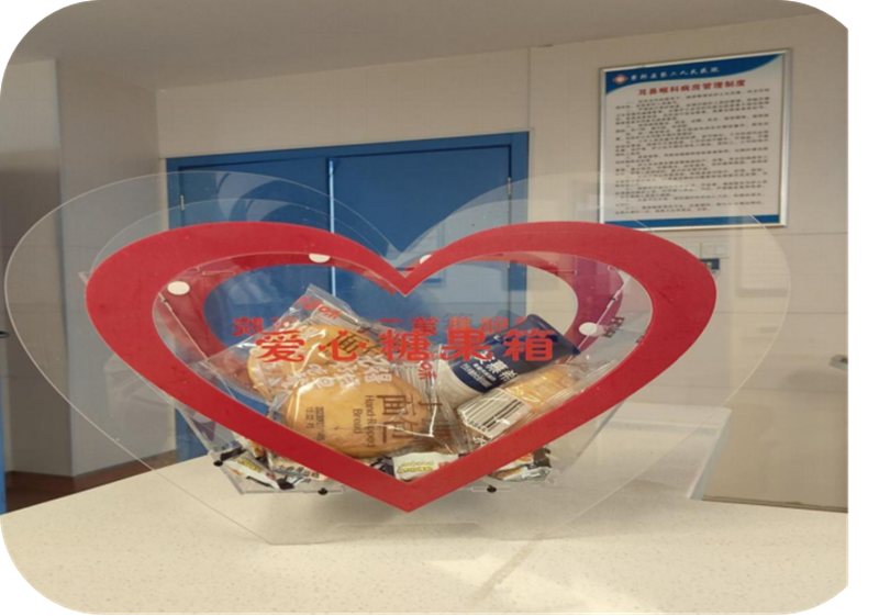提升患者就医体验:部分诊疗项目需要患者空腹,空腹时间过长容易引发头晕、低血糖等症状。“爱心糖果箱”为患者提供了即时的糖分补充,有助于缓解这些不适,提升患者的就医舒适度。通过提供“爱心糖果”,传递了温暖和关怀,增强了患者的归属感和幸福感。 应对突发情况:对于低血糖患者,“爱心糖果箱”中的糖果等食物可以快速提升血糖水平,发挥急救作用。
