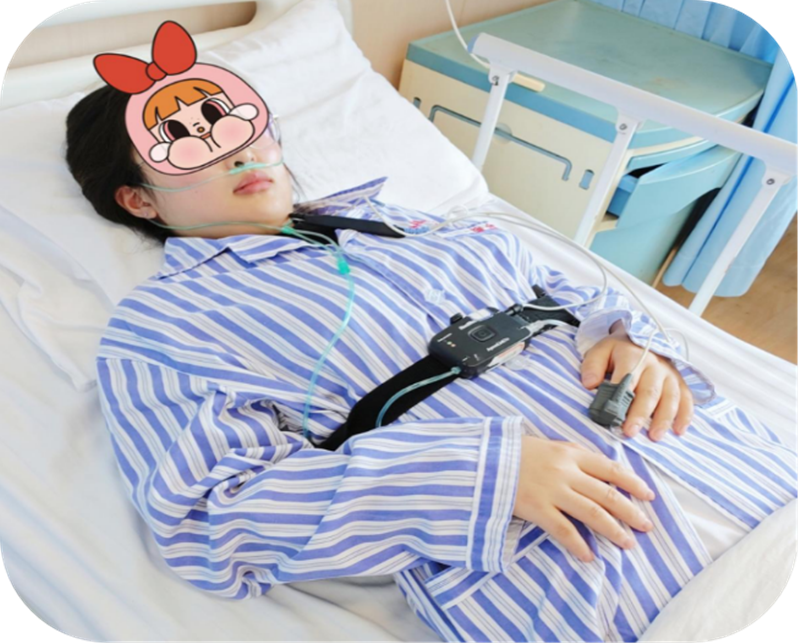 为患者佩戴上睡眠呼吸监测仪,监测睡眠呼吸暂停的指数。