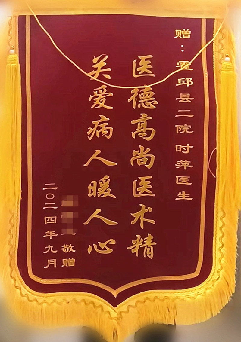 霍邱二院网 9月27日,县二院门诊楼中医科门诊再次收到一患者送来的一面印有“医德高尚医术精 关爱病人暖人心”的锦旗,以此表达对中医科时萍医生中医妙手治顽疾的感激。这面锦旗不仅代表对医生的信任和认可,更是对传统中医暨中医调养效果的最好证明。