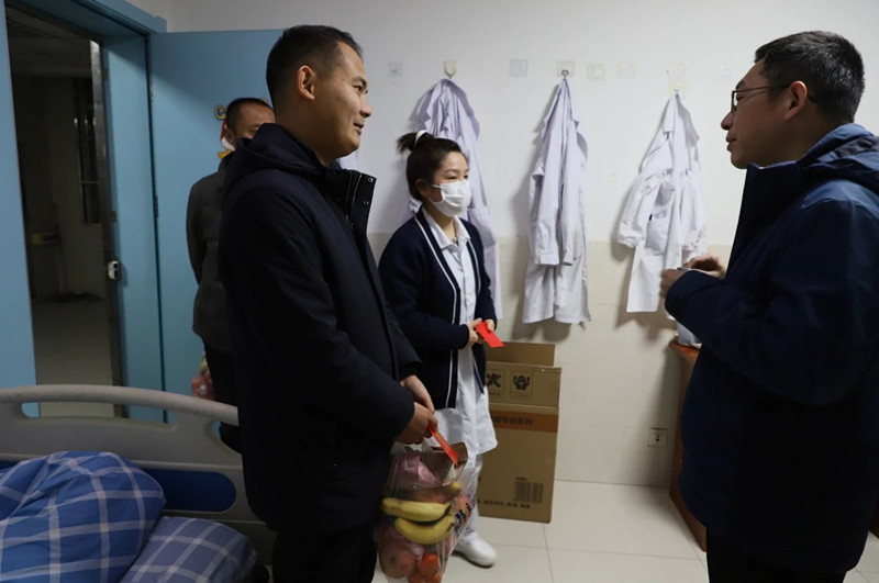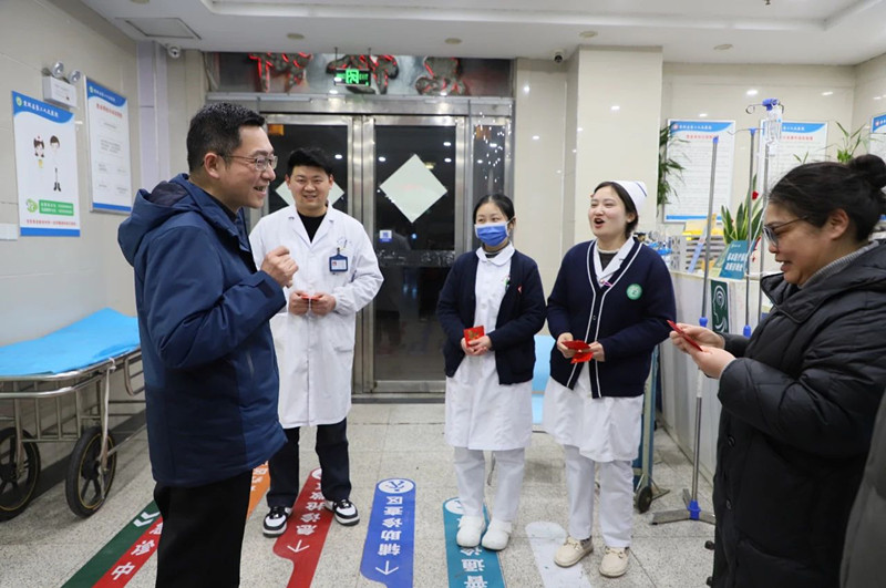 每到一处,院领导都亲切的与各科室值班人员交流,向他们传达新春佳节的诚挚祝福,对他们“舍小家、为大家”的医者情怀,毅然坚守岗位的无私奉献精神表示衷心感谢。同时,了解春节期间值班情况及就诊状况等,嘱咐大家在春节期间要时刻牢记医疗质量和安全生产的重要性,以保障患者健康为中心,确保大家度过一个安全和谐的节日。