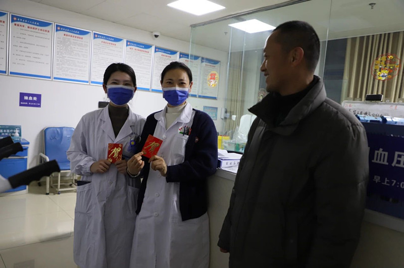 霍邱二院网 金龙腾云旧岁去,灵蛇献瑞启新篇。1月28日,正值除夕夜,县二院党委书记周进带领领导班子及部分职能科室负责人深入临床、医技、窗口等一线,看望慰问节日期间依然坚守在一线岗位上的工作人员,向他们致以诚挚问候和新年祝福。