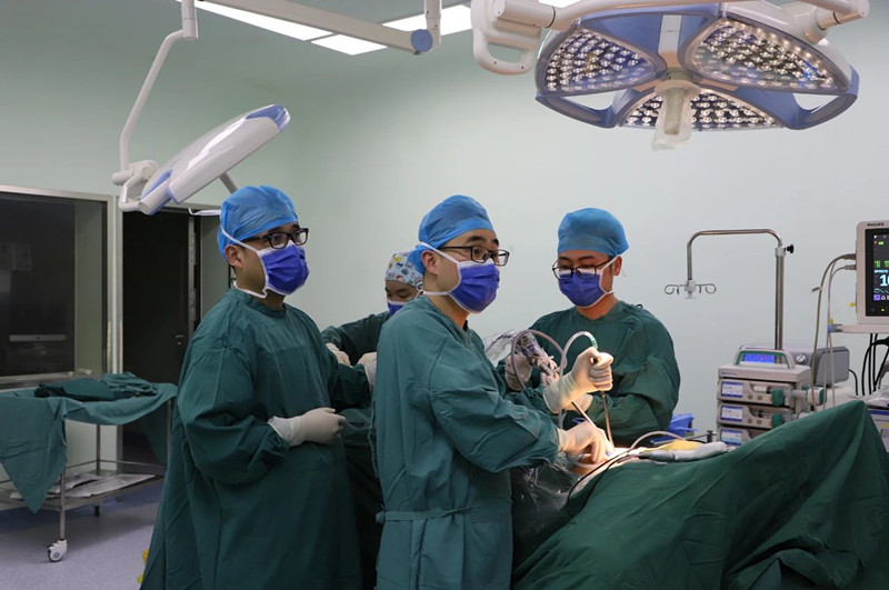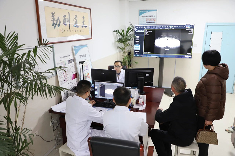 在县二院门诊部二楼“李鹤成名医工作室”现场,第二期预约而来的40余名患者已经排起了长队,李成强博士一大早便投入到有序的诊疗工作中,耐心细致地为每一位患者进行诊疗分析、提供建议和提醒注意事项,并耐心解答患者提出的疑问。其精湛的医术、亲切的态度,给就诊患者留下了深刻的印象,赢得了患者的好评。坐诊结束后,李成强博士带领县二院胸外科团队先后为预约的5位手术患者(肺结节手术4台,纵隔肿瘤手术1台)开展手术。