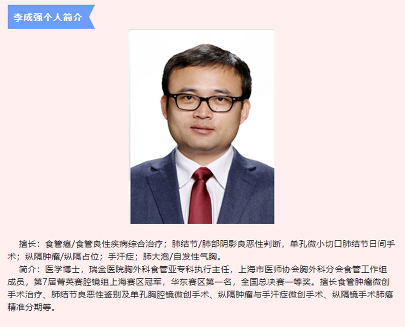 霍邱二院网 3月15日,上海交通大学医学院附属瑞金医院胸外科食管亚专科执行主任、医学博士李成强亲临县二院顺利开展坐诊、手术等系列活动,为县域民众带来了健康福祉。