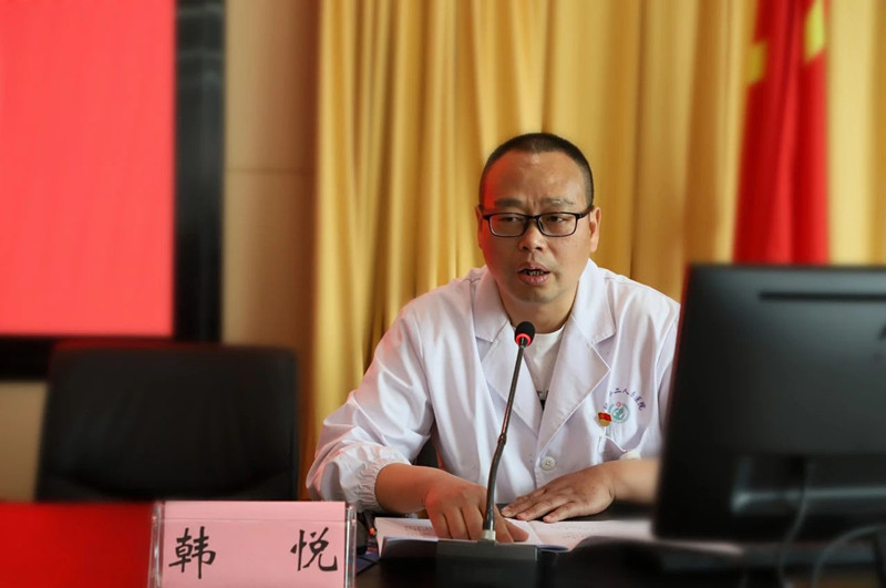 医务科科长、重症医学科主任韩悦宣读相关文件精神