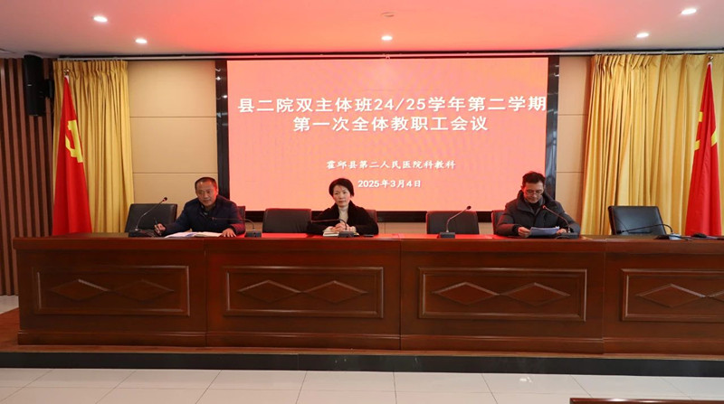 霍邱二院网 3月4日,县二院在住院部十六楼会议室组织召开双主体班24/25学年第二学期第一次全体教职工会议。副院长吴莉,院长助理、康养中心主任陈孝军,科教科副科长涂述丹及双主体班24/25学年第二学期全体教职工参加。会议由副院长吴莉主持。