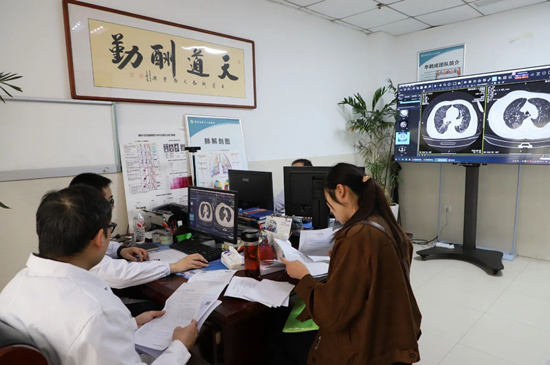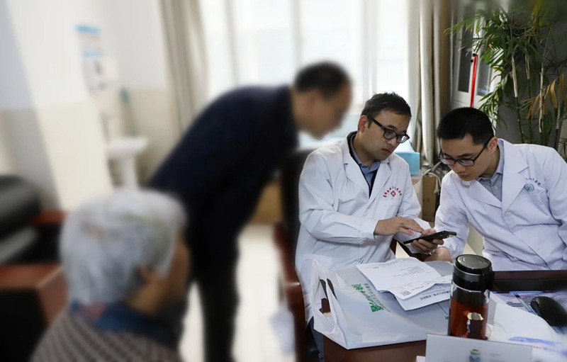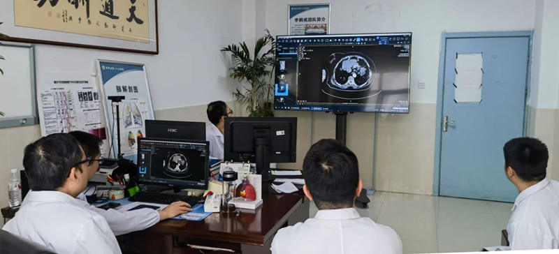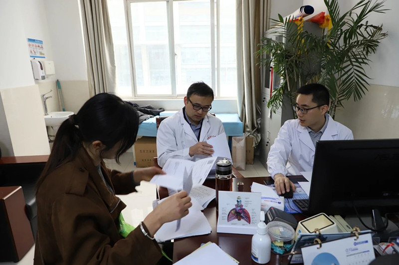 在县二院门诊部二楼“李鹤成名医工作室”现场,李成强博士为第四期预约而来的30余名患者耐心细致地进行诊疗分析、提供建议和提醒注意事项,并耐心解答患者提出的疑问。其精湛的医术、亲切的态度,给就诊患者留下了深刻的印象,赢得了患者的好评。坐诊结束后,李成强博士带领县二院胸外科团队开展教学查房、疑难病例会诊讨论、专科业务学习暨学术交流活动。
