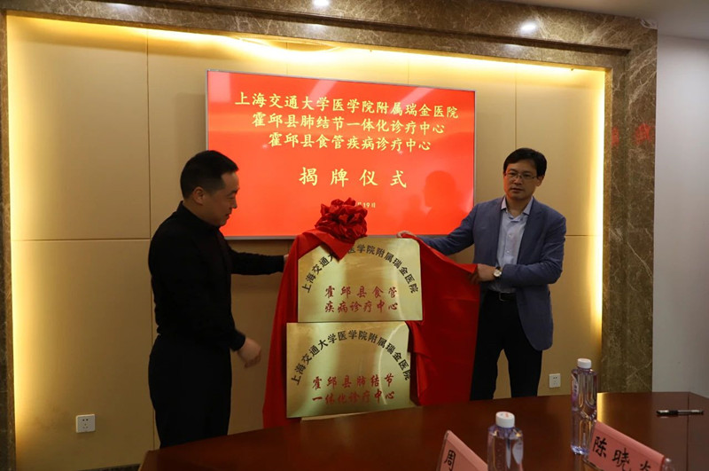随后,在与会领导专家的共同见证下,李鹤成教授与吕彬副县长共同为两大诊疗中心揭牌。后续,上海瑞金医院胸外科暨“李鹤成名医工作室”专家团队,将通过亲临坐诊及手术、远程会诊、学术交流研讨等方式,实现肺结节“早筛早诊早治”和食管疾病等规范化治疗的全流程覆盖暨构建“筛查-诊断-治疗”全流程服务体系。